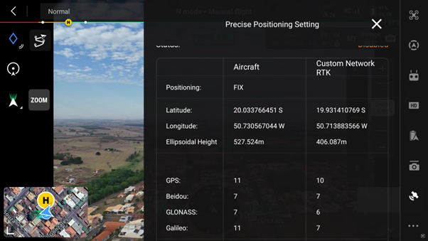 • Configuração no software de voo: preenchimento desses dados no DJI Pilot 2 para habilitar a correção em tempo real.
